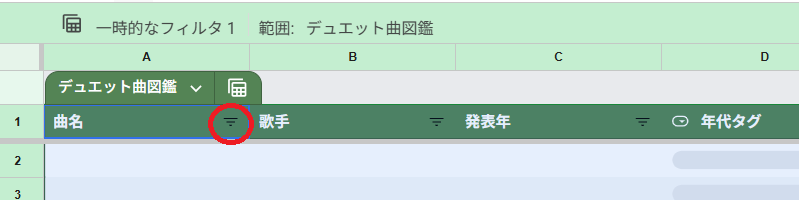 並べ替えたい列の赤丸部分をクリック
